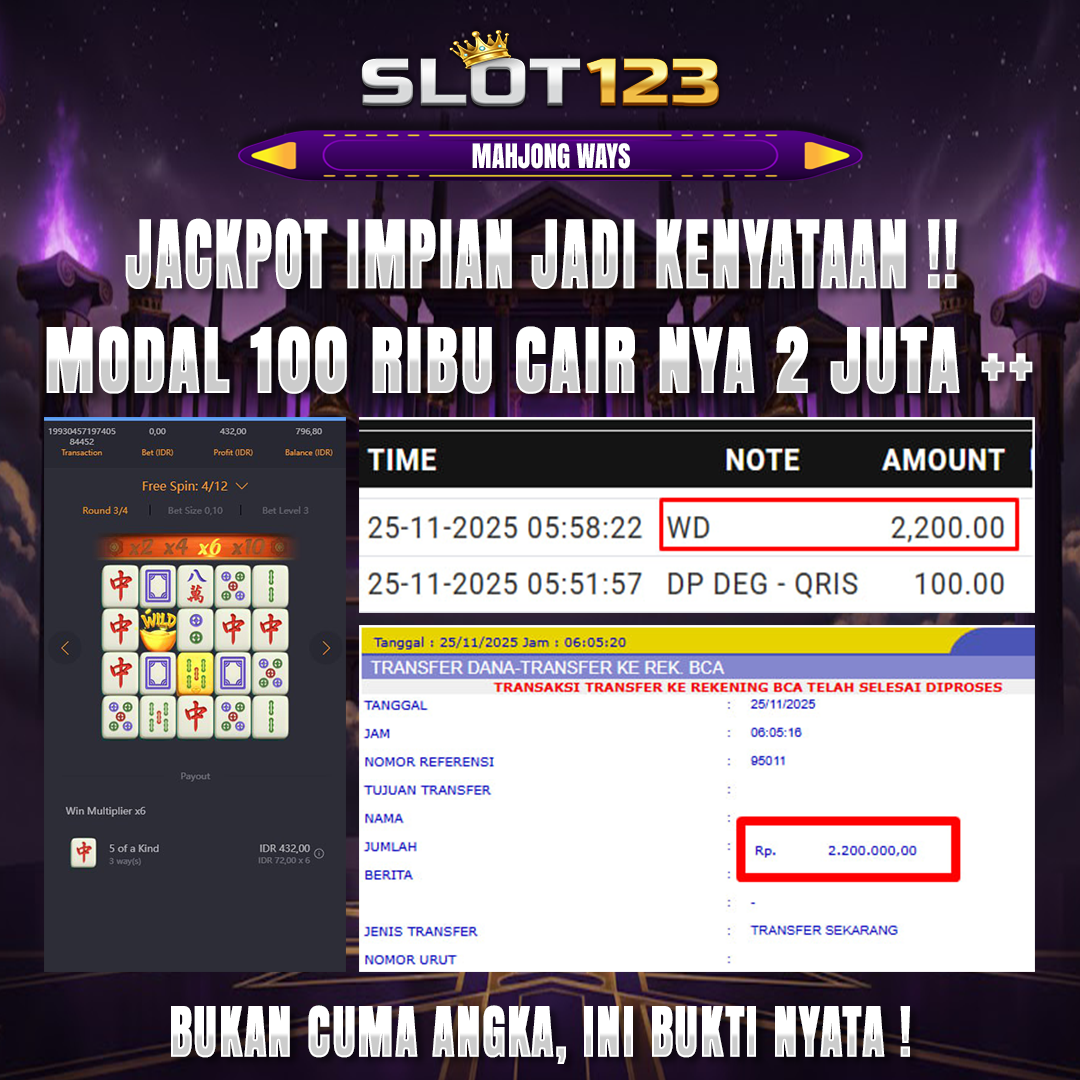 Gabung bersama SLOT123 dan Dapatkan kesempatan jackpot sensasional dalam 15 menit separate bukti banner ini bukan sekedar janji hanya Depo 100k Withdraw 2,2 juta hari ini.